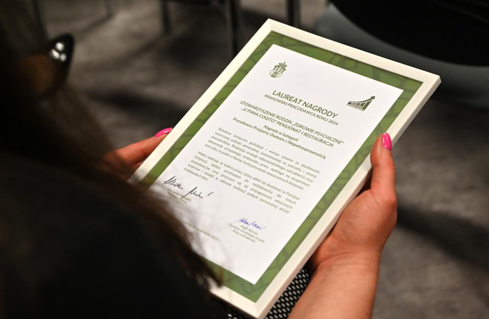 Nagrodę w kategorii „Pracodawca Roku Przyjazny Osobom z Niepełnosprawnością” otrzymało Stowarzyszenie Rodzin „Zdrowie Psychiczne” – Pensjonat i Restauracja „U Pana Cogito”. Kapituła wyróżniła tę organizację za wyjątkową wrażliwość społeczną, realne działania na rzecz integracji zawodowej i społecznej pracowników oraz promowanie idei równości i otwartości na rynku pracy.